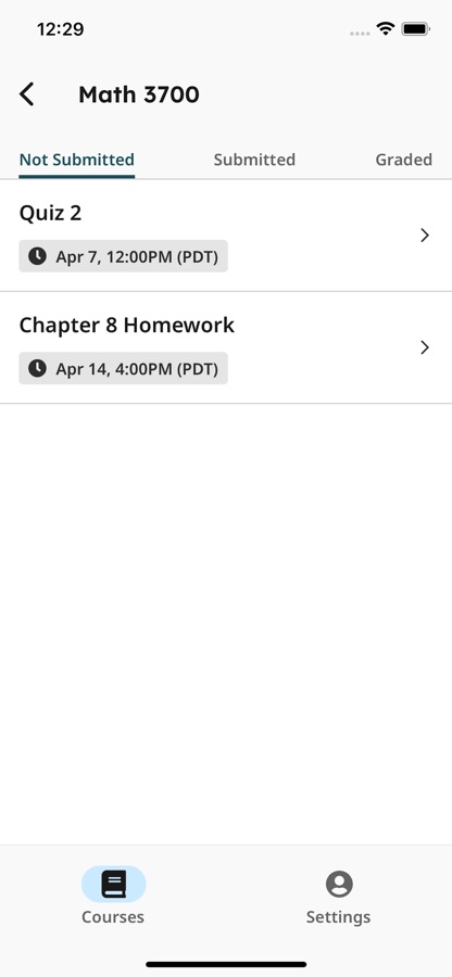 Note: For V1 of the app, you will be directed to our mobile website for any advanced functionality, including viewing feedback and submitting timed, programming, or online assignments. Stay tuned for future updates that will allow you to do even more with our mobile app!