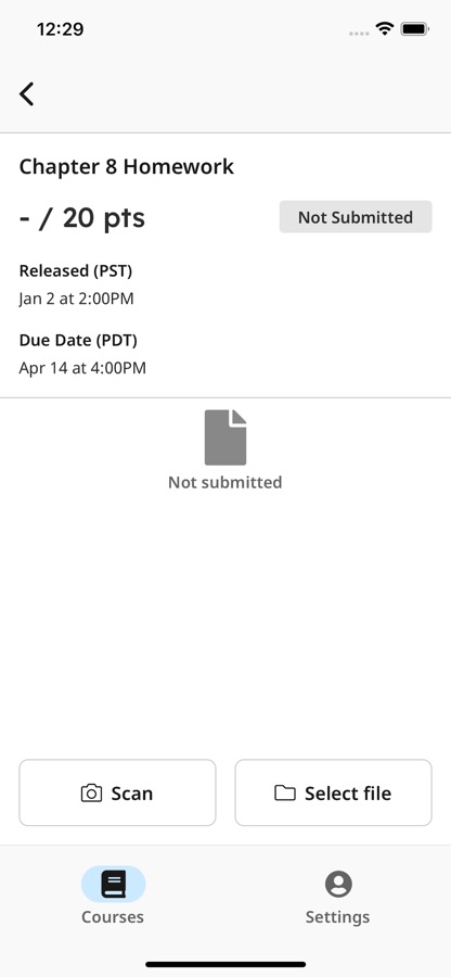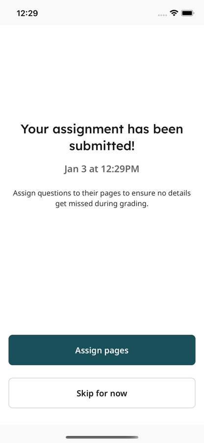 After installing and opening the app, login to see your Gradescope courses and assignments. To upload a submission, click on the assignment in the “Not Submitted” tab and either “Select File” to select an existing file from your device or “Scan” all pages of your completed work using your iPhone’s camera. Once you submit your file(s), for templated assignments, you’re all set. For variable-length assignments, “Assign pages” to indicate where your answer for each question appears within your submission. It’s that easy! After confirming, your assignment then moves to the “Submitted” tab. If needed, you can resubmit your assignment until the due date your instructor set has passed. Once it is graded and grades are published for the assignment, it then moves to the “Graded” tab.