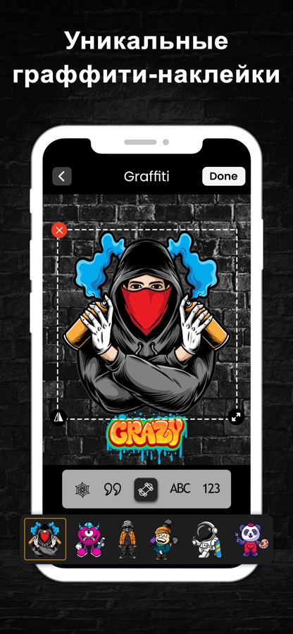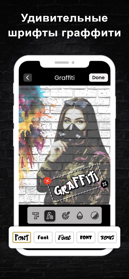 Превратите текст в изображение и создайте граффити-обои. Пользователи могут создавать и украшать изображения и логотипы, добавляя фотографии галереи в качестве граффити-наклеек. Используйте разноцветные фоны и фильтры для создания великолепных дизайнов.