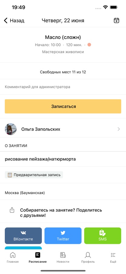 С помощью приложения вы можете следить за новостями, расписанием клуба, записываться на занятия, делать заморозки