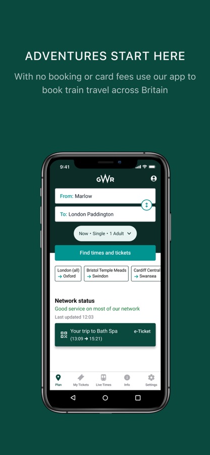 Use the Great Western Railway app to plan your next journey and book train tickets with ease.