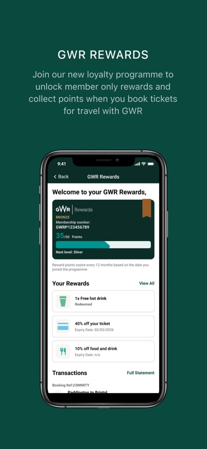 * Easily access your rewards to redeem in-app and onboard GWR services