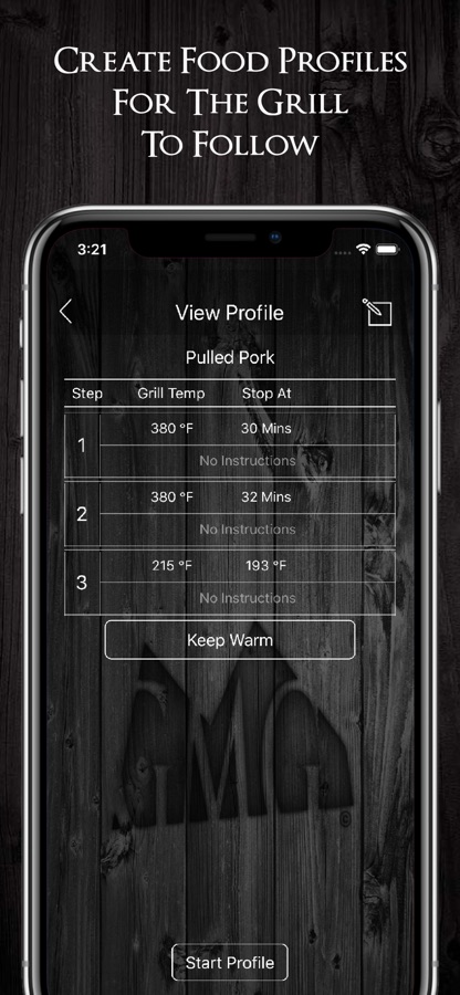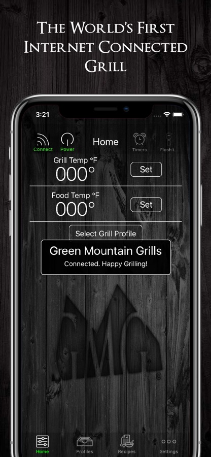 Bring your Green Mountain Grill into the 21st century with our grill management app. This app utilizes WiFi technology and has a range of up to 40 meters in point to point mode. You also have the ability to connect your grill to your home network in WiFi Mode and to our cloud based system in server mode. You can create grill profiles, monitor meat temps, set timers and alarms, and adjust grill temps from inside your home or anywhere. We have recently added calibration tools to calibrate both air temperature and probe temperatures. Stay tuned for updates and additional features on future releases.