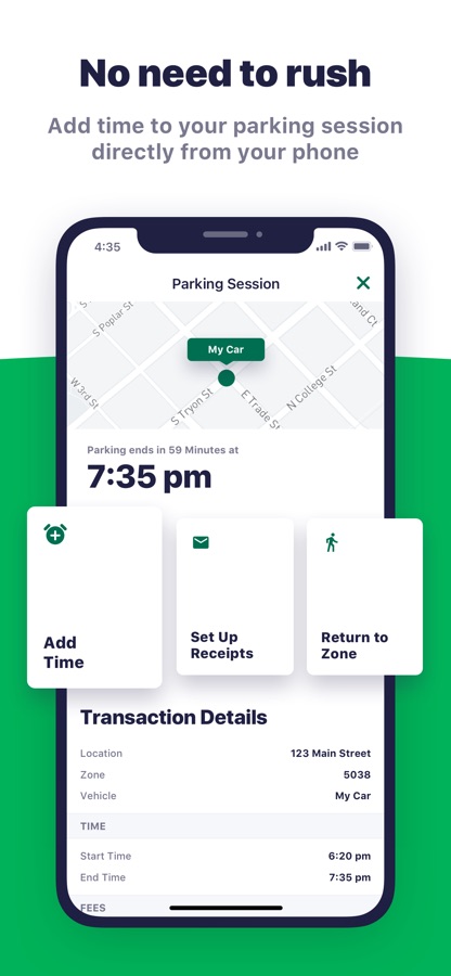 Set up your profile quickly and pay using Apple Pay, PayPal, or your credit card. Plus, the app will notify you when your parking time is about to expire, so you can extend it remotely if needed.