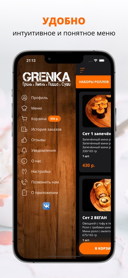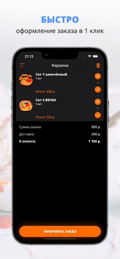 Скачивайте наше приложение, оформляйте заказ и наслаждайтесь любимой едой, где бы Вы ни были! Приятного аппетита!