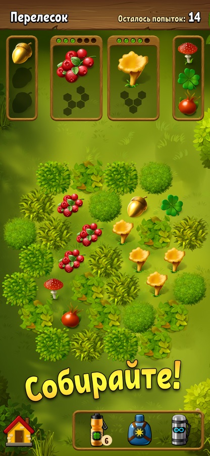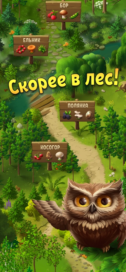 Вас ждёт простой и увлекательный поиск грибов, ягод, трав и других лесных даров, полное погружение в добрый и чистый мир природы. Спокойный и расслабляющий игровой процесс вы сможете дополнить дружеским общением в клане и азартными состязаниями в турнирах.