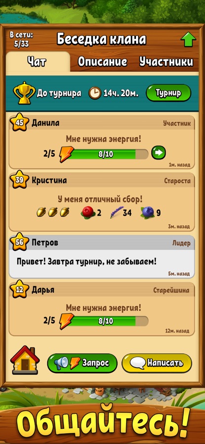 – Общение с друзьями в чате и помощь от других участников клана