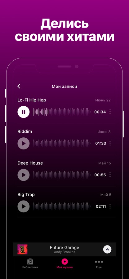 — обширная библиотека уникальных звуковых дорожек. Ищите и выбирайте любимые треки – в приложении представлены самые популярные жанры: хип-хоп, EDM, хаус, дабстеп, драм-энд-бейс, электронные и т. д.