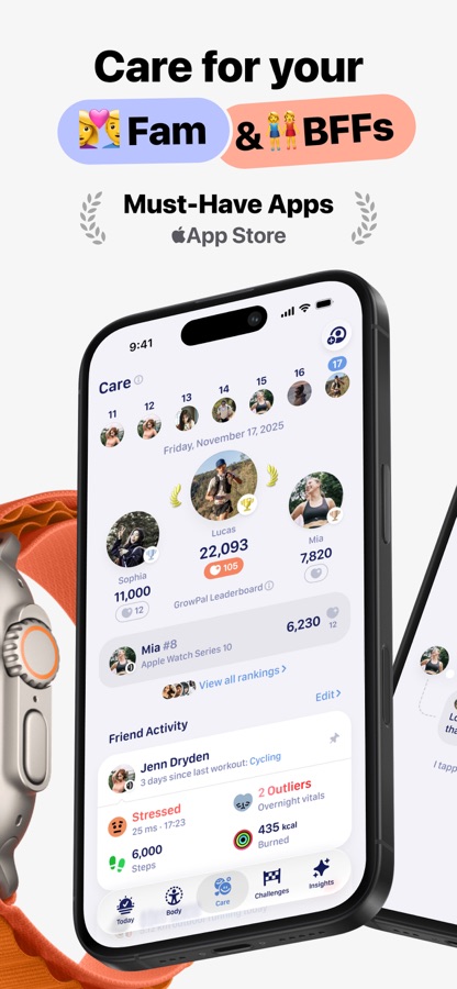 GrowPal is your Apple Watch best friend, helping you easily track your steps, sleep, HRV stress, workouts, hydration, and sunlight exposure, while caring for and staying connected with loved ones to support, encourage, and build a healthier life together.