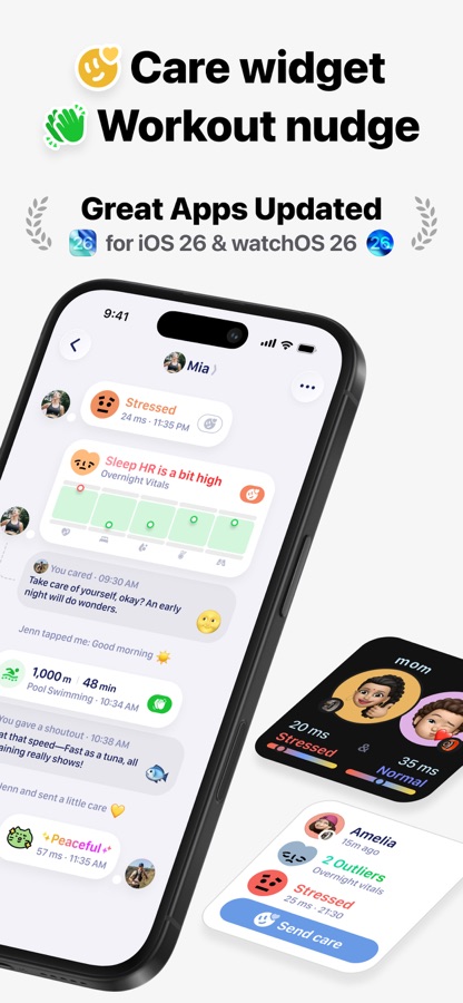 Get notified when someone’s stress rises or vitals look off—and send your care right when it matters.