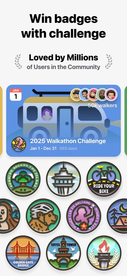 Join health challenges with people around the world and earn beautifully designed digital badges every month.