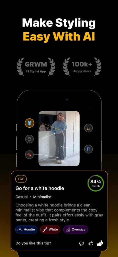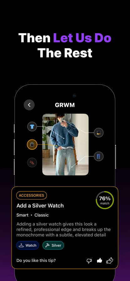GRWM analyzes your outfit, providing instant ratings, potential, and personalized fashion tips to help you elevate your look effortlessly.