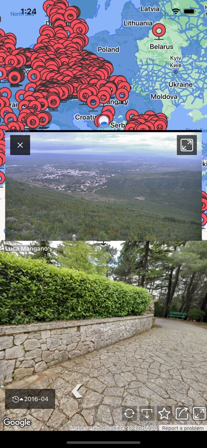 — нажмите на местоположение на карте, чтобы найти ближайший панорамный вид