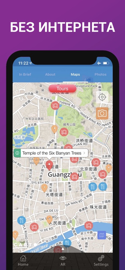 ДОПОЛНЕННАЯ РЕАЛЬНОСТЬ, в отличии от других путеводителей, с данной программой Вы сможете открывать для себя города с помощью лучшего инструмента на Вашем iPhone или iPad – дополненной реальности AR – просто нажмите кнопку AR, повернитесь вогруг себя и Вы увидите на экране расположение самых интерестных достопримечательностей и информацию о том, как их найти. Вы также сможете использовать прокрутку для поиска ближайших или самых отдаленных достопримечательностей.