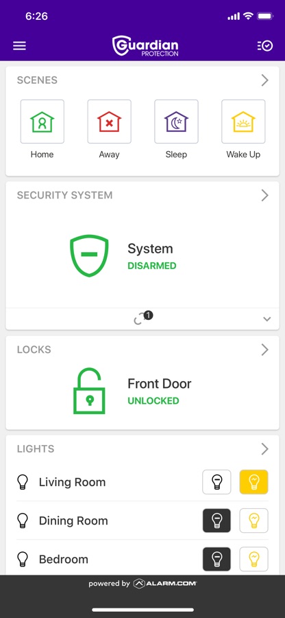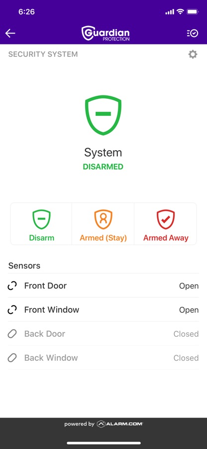 Note: This app requires you to be a Guardian Protection customer and subscribe to Guardian’s Remote Home Control Services. Feature availability is based on your system equipment and monitoring services agreement.