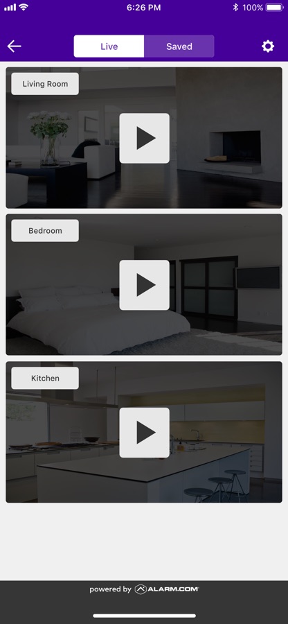 Watch live or recorded video clips from your security cameras