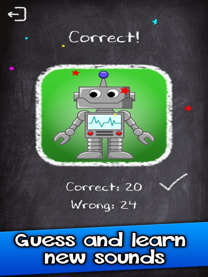 С более чем ста сорока мелодиями животных, музыкальных инструментов, бытовых звуков, транспортных средств, спорта и многого другого. Для каждого звука, который вы слушаете, вам нужно будет выбрать ответ из четырех изображений и коснуться рисунка, чтобы подтвердить свою догадку.