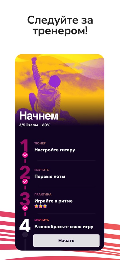 Присоединяйтесь к миллионам пользователей и начинайте обучение в удобном для себя темпе с помощью специального приложения CoachGuitar. Обучайтесь последовательно и ощутите реальный прогресс!