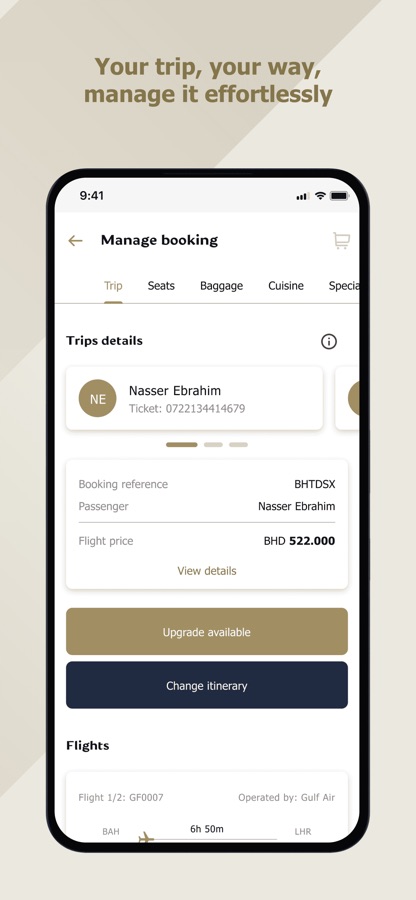 The official Gulf Air app is designed to make every step of your travel simple, smart, and rewarding. From booking to boarding, the app keeps you in control anytime, anywhere.
