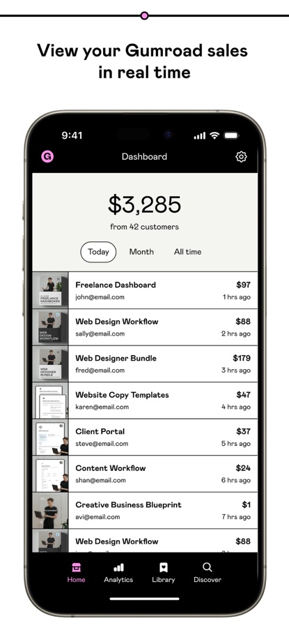 Gumroad, the most powerful platform for enabling creators to sell directly to their audiences, now has an app! With it, you can easily read, listen to, or watch all of the products you buy via Gumroad on your iOS device. If you are a Gumroad creator, you can also view your sales data and charts in an easy-to-use interface.