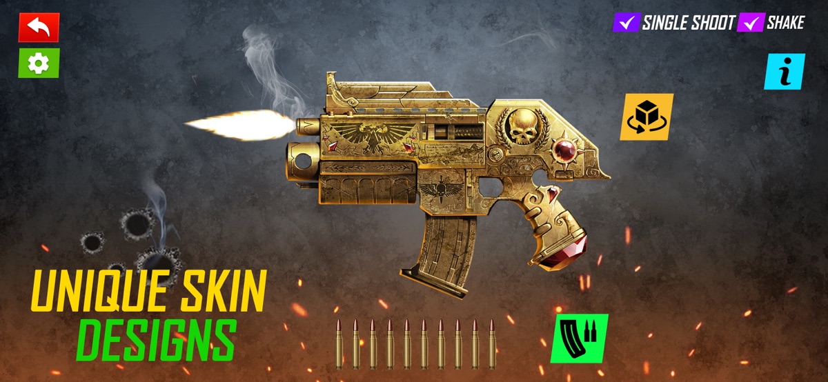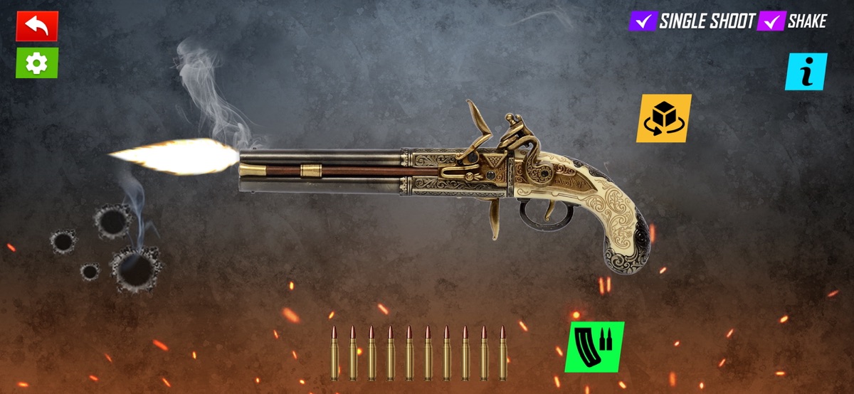 Это приложение идеально подходит для любителей игр-симуляторов стрельбы, игр по обезвреживанию бомб в стиле CSGO, игр-стрелялок и оффлайн-шутеров, приложений для снайперского оружия и симуляторов пистолета. Перейдите в режим FPS-шутера, смоделируйте миссию по обезвреживанию бомбы или разыграйте друзей с помощью симулятора звуков выстрелов. Наслаждайтесь реальными звуками выстрелов из пистолета в различных условиях, включая дождь, снег и гром.