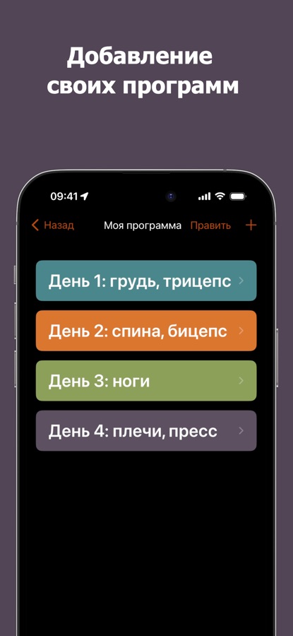 • БЕЗЛИМИТНОЕ количество своих программ, тренировочных дней и упражнений