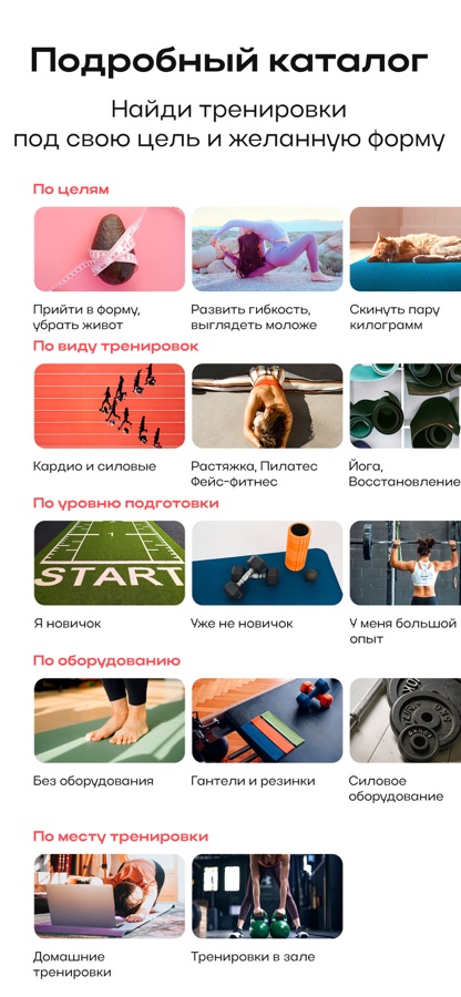 — Тренировки от 10 минут до полноценных программ на 2–3 месяца — выбирайте свой темп