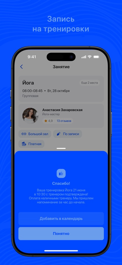Мобильное приложение для клиентов фитнес-клубов и спортивных студий