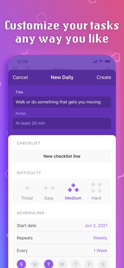 • Parties let you team up with friends for extra accountability and battle fierce foes by completing tasks