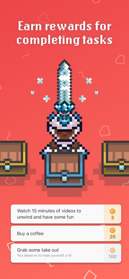 Create an avatar then add tasks, chores, or goals you’d like to work on. When you do something in real life, check it off in the app and receive gold, experience, and items that can be used in-game!
