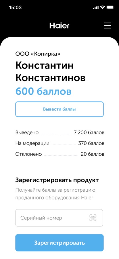 Мобильное приложение для регистрации серийных номеров пользователями партнерской программы HaierProff.