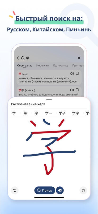 Поиск по иероглифам, пиньинь или рукописному вводу