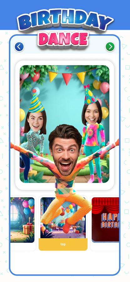 Каким бы танцором вы ни были, вы найдете забавное танцевальное движение, подходящее для вашего празднования дня рождения. Разместите 3D-модель своего лица на танцорах, посмотрите список веселых танцев в приложении, создайте свое собственное поздравительное видео и подарите радость своим родным или друзьям на праздновании дня рождения!