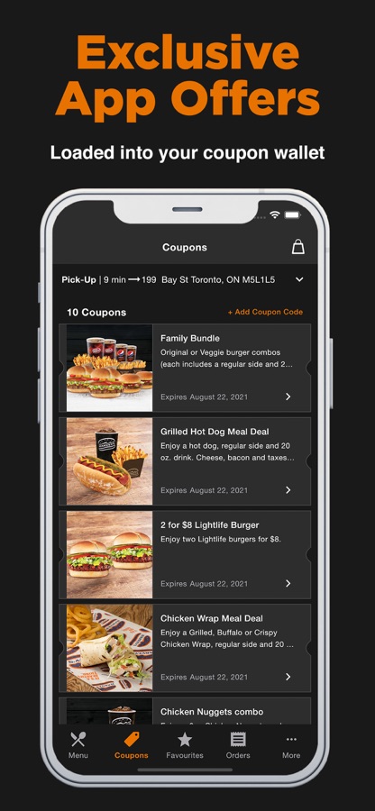 • Select from over 250 Harvey’s locations to skip the line and order your flame-grilled favourites ahead of time. Plus, make a contactless payment.