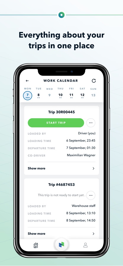 In Your route – the home page of the app – you can handle everything concerning your current trip. Run through the departure procedure, handle delivery tasks, and complete your trip when you’re done.
