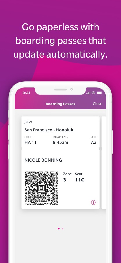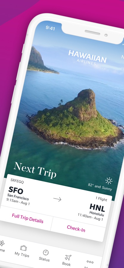Aloha! Welcome to the Hawaiian Airlines app! Our goal: smooth and worry-free travel experience when you travel with us. From streamlined booking to faster check-in, paperless boarding passes, and real-time flight notifications, you’ll have everything you need for your travel needs, all in the palm of your hand.