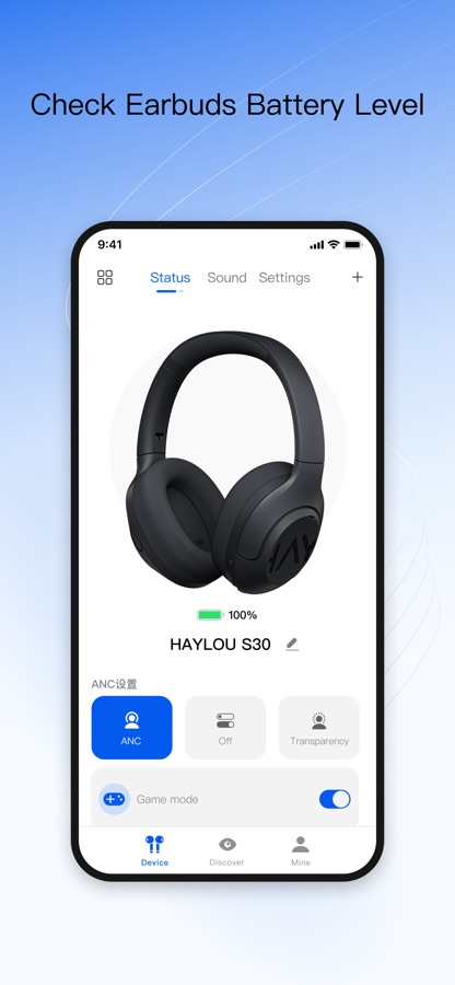 Use Haylou Sound to quickly check the power level of your headset, set different sound effects for your headset, modify headset button settings, and upgrade your headset firmware version.