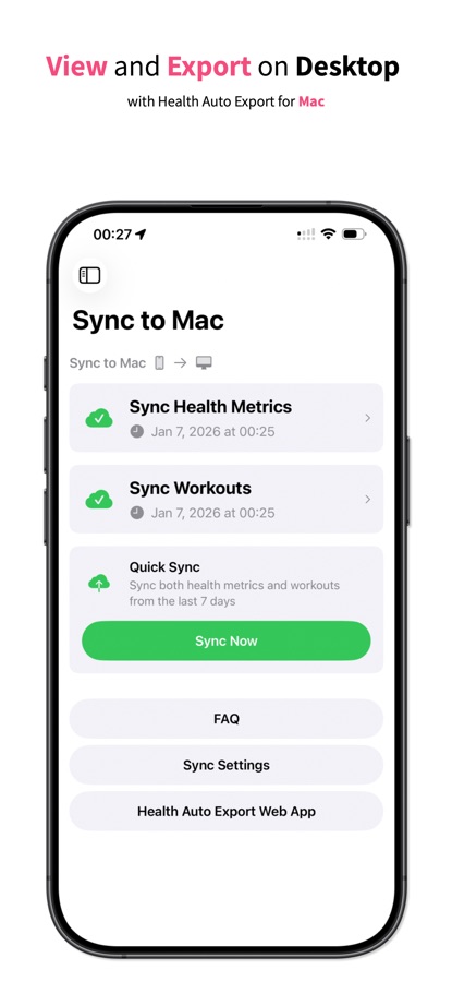 * Sync to Mac makes your health metrics and workouts available on Mac by syncing from iPhone.