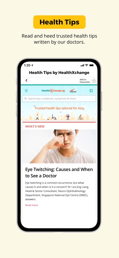 Access over 800 conditions and treatments written by our SingHealth doctors.