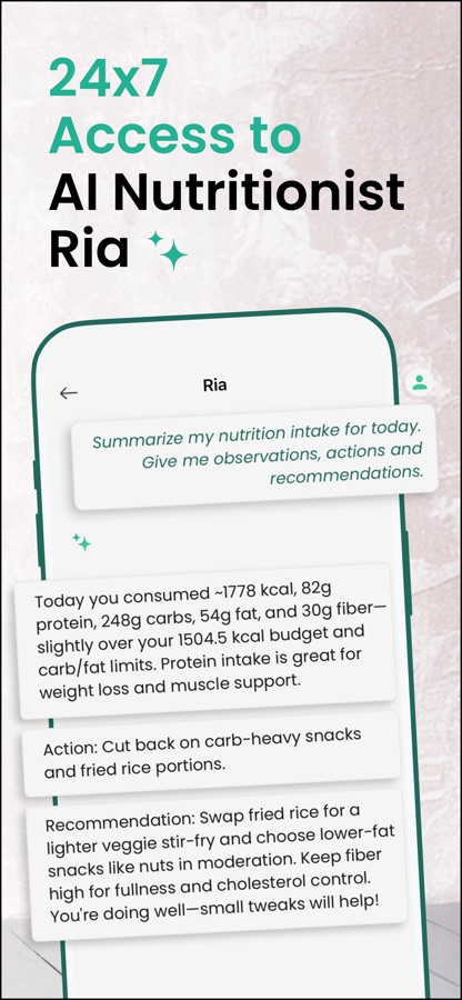 — From logging your meals to helping you manage your calorie intake, Ria is your 24/7 health companion..