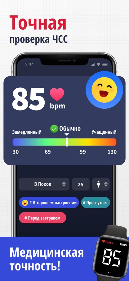 «Монитор сердечного ритма» — самое точное приложение для измерения частоты сердечных сокращений и пульса. Просто приложите кончик пальца к камере и получите результат измерения уже через несколько секунд. Не требуется никаких медицинских приборов для отслеживания ЧСС! Установите приложение «Монитор сердечного ритма» и следите за состоянием своего сердца!