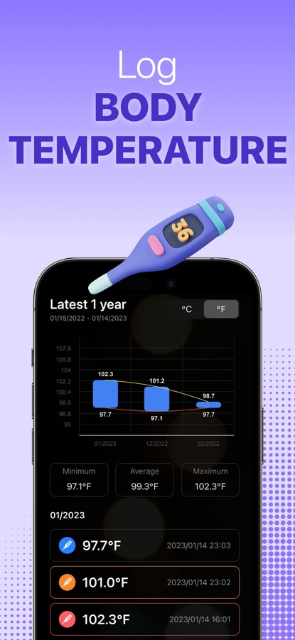 3. Record and track your blood pressure and blood oxygen level saturation and body temperature anytime and anywhere.