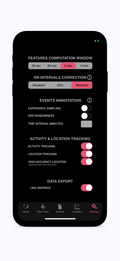 — RR-intervals correction can be enabled to prevent ectopic beats or artifacts from affecting HRV features