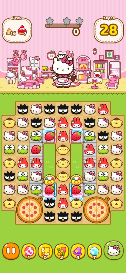 Знаменитые HELLO KITTY, MY MELODY, POMPOMPURIN, BAD BADTZ-MARU, KEROKEROKEROPPI, TUXEDOSAM в игре-головоломке!