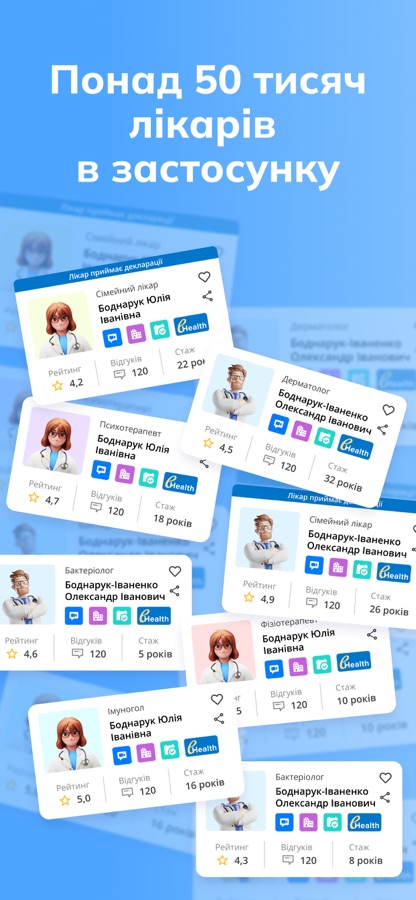 • Запис до лікаря — швидкий пошук спеціаліста за рейтингом, відгуками чи стажем. Записуйте себе або рідних за кілька хвилин.