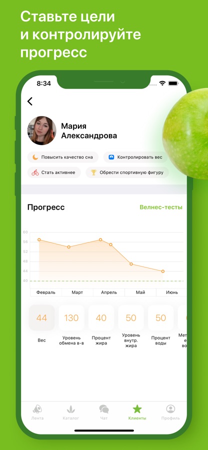 ● вводить показания wellness-тестов, помогать достигать целей и добиваться лучших результатов;