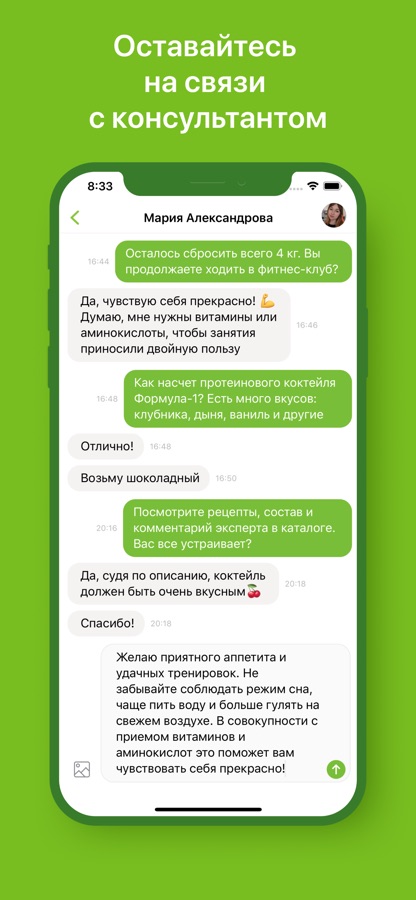 ● всегда оставаться на связи с персональным Консультантом по питанию, получать индивидуальные консультации и рекомендации по питанию;