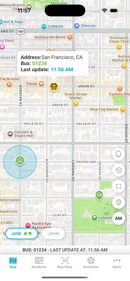 -Receive notifications when your child gets on/off the bus, including the bus number, location and time