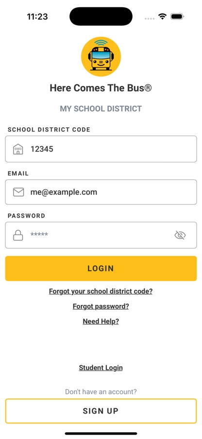 **NOTICE: In order to use the app, your school district must have a contract with Synovia Solutions and make Here Comes the Bus® and/or Student Ridership available to parents. Please contact your school district or visit www.herecomesthebus.com for more information.**