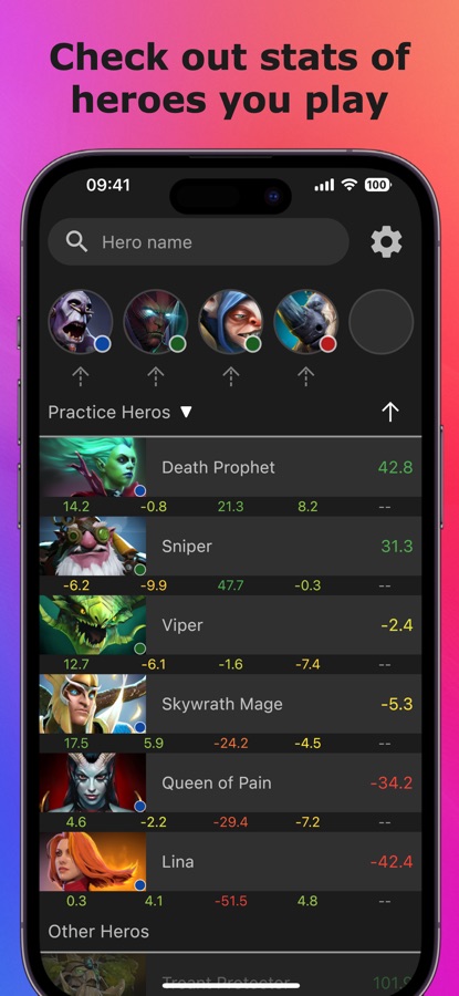* Create a category of your own heroes and check out advantage of heroes you play.